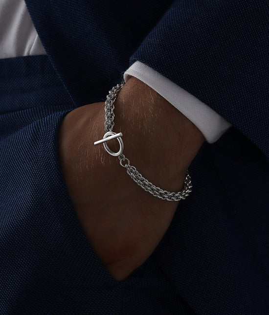 Strap: Mesh band in rhodium-plated 316L stainless steel