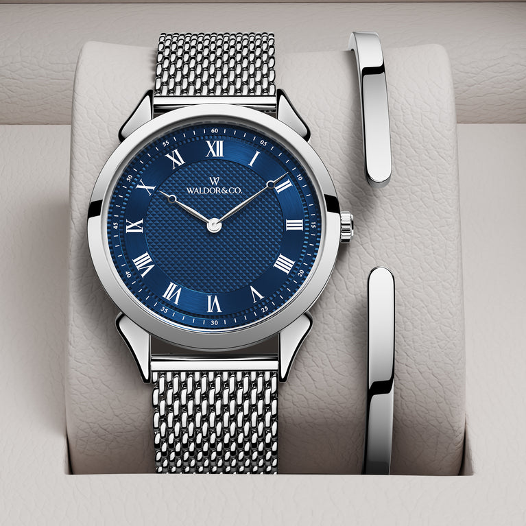 Strap: Mesh strap in rhodium-plated 316L stainless steel